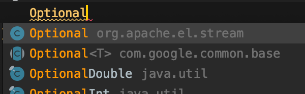 java.util 하위에 Optional class가 존재하는 데도 불구하고 자동완성에 나오질 않음..